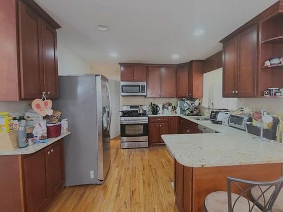 Totally renovated 3 Bedroom 2 full bath traditional split level home in a cul- de- sac.Across from park/w playground.Main level offers living room,formal dining room and renovated modern kitchen with granite counter tops, breakfast nook,& stainless steel appliances,a full bath with a shower stall,Family room with fire place and sliding door to a spacious deck & private backyard. Upper level offers a master bedroom,2nd & 3rd bedroom,full bath with tub. The ground level offers one car garage,a den/office,laundry & utility room. Hardwood floors through-out,central air system,newer roof & black top driveway.All the utility bills & water are paid by tenant.Tenant cares lawn care and snow removal,1st $300 repair or replacement shall be responsible of tenant,Convenient to all,commute to NYC,worship, shopping,& park. Blue ribbon school system.NTN credit report,last 3 pay stubs.Tenant must pay certified checks(1.5moth security deposit,1st month rent & 1 month broker fee).NO ANY PET Please All the utility bills & water are paid by tenant. Tenant cares lawn care and snow removal,1st $300 repair or replacement shall be responsibility of tenant. NTN credit report,last 3 pay stubs.Tenant must pay certified checks(1.5moth security deposit,1st month rent & 1 month broker fee).NO ANY PET Please