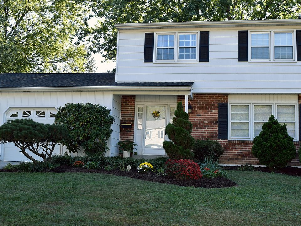 New Price! This move-in ready home is available to view now. The main level features a spacious living room with new carpet, dining room, kitchen with wood cabinets, cook-top, half bath powder room, laundry, and a large family room with a brick fireplace and sliding glass doors to the back patio and fenced yard. The connected 2 car garage features a newly finished concrete floor. Upstairs are 3 bedrooms with walk-in closets and a full bath. The finished basement is a great bonus room with extra storage. Most of the windows have been replaced and there is gas heat and central air. Centrally located with great access to dining and shopping options. Hurry to see this great home at a great price.