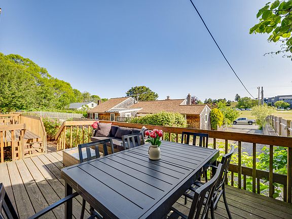 This two-level townhouse offers a bright and functional layout in a location that strikes the perfect balance--conveniently close to the center of town, yet tucked just far enough away to enjoy a quiet neighborhood setting. With 805 square feet, the main level features hardwood floors, a white kitchen with stainless appliances, and an open living/dining space with two sets of sliders leading to exclusive-use deck--ideal for outdoor dining and entertaining. A discreet staircase maximizes living space, and a main-level half bath includes a full-size washer and dryer. Upstairs, both bedrooms offer generous proportions and a vaulted ceilings, complemented by a shared full bath. Exclusive-use outdoor areas in front and back, one parking space, and a peaceful setting round out the offering. Pets allowed for owners and weekly rentals permitted--offering strong rental history and flexibility for year-round use, a getaway, or investment.