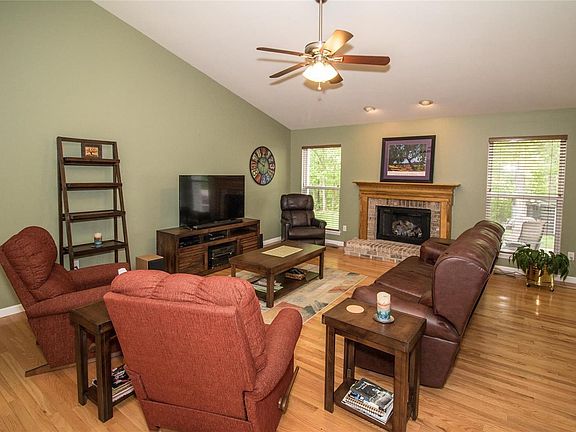This 3 bedroom/2 bathroom ranch home offers many updates throughout and is ready for its new owners.The great room is vaulted, has a gas fireplace, some newer wood flooring and lighting and has a nice view of the back yard. The kitchen has been updated with 42 cabinets & stainless steel appliances, tile flooring, recessed lighting and walk-in pantry.Main floor laundry off the kitchen for convenience.Newer sliding door from the breakfast room to the huge patio perfect for entertaining or enjoying your privacy.Spacious master bedroom with walk-in closet and an updated gorgeous master bath with tile shower & floor and double sink vanity, lighting.New roof fall 2018. Convenient location to Gravois Bluffs for shopping, dining, entertainment.Dont miss this opportunity to call this your home.