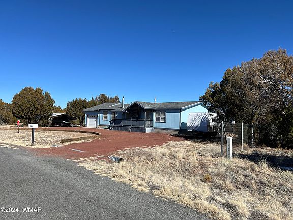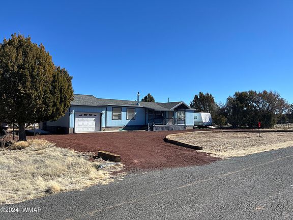 VERY MUCH PRIDE OF OWNERSHIP!! This clean home features blinds & ceiling fans through out, a roomy back covered deck, attached one car garage, added on mud room/work or gardening area plus huge storage room with pantry. Beautiful pellet stove in Living Room along with gas heated central heat. Roof installed in 2021 & water heater in 2022. Apprx 25 miles to Show Low or 17 miles to St Johns.
