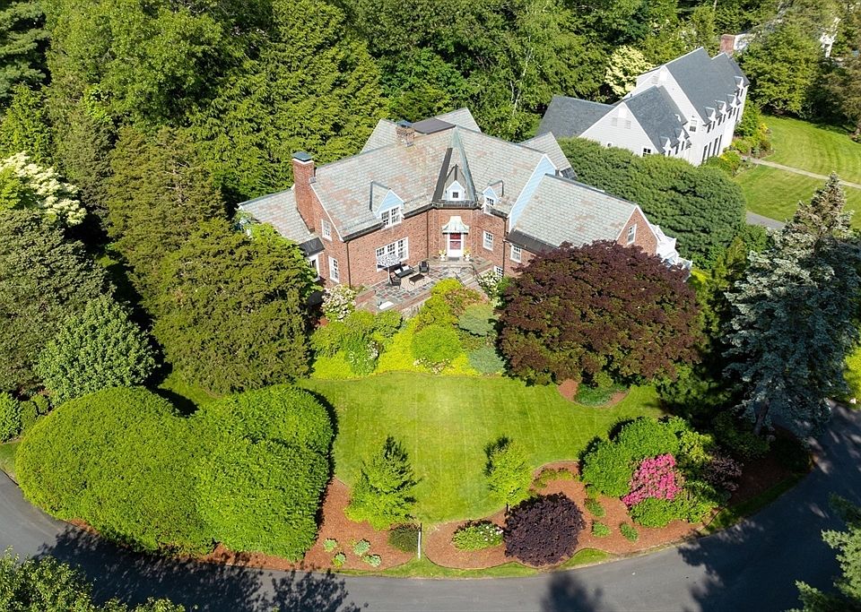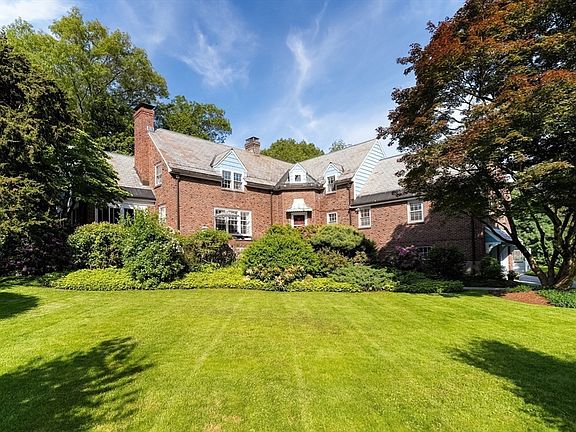 Multi-Generational/Au Pair Living is designed into this meticulously maintained, 13-room brick English Revival, Belmont Hill home. Greet guests on the slate patio & create memories lingering in the airy foyer. The home is laid out perfectly, flowing openly from the living room, crowned w/ dental molding, wainscoting & one of the home’s 3 wood-burning fireplaces, to a peaceful sunroom. A bright formal dining room is separated from the warm, wood paneled breakfast room and the fire-placed den. Ascend a stunning curved staircase to the privacy of 2nd floor landing & suite of 5 spacious, air-conditioned bedrooms, with hardwood floors throughout. The primary en suite bedroom boasts a walk-in, gable-windowed dressing room. Conveniently separated on the 1st floor is a Full Bath + set (2) of Bedrooms. Custom built-in's throughout the home, a 2 car garage & walk-out basement (laundry room, 1/2 bath, fire-placed billiards room, work room). Private road abuts Audubon Habitat & hiking trails
