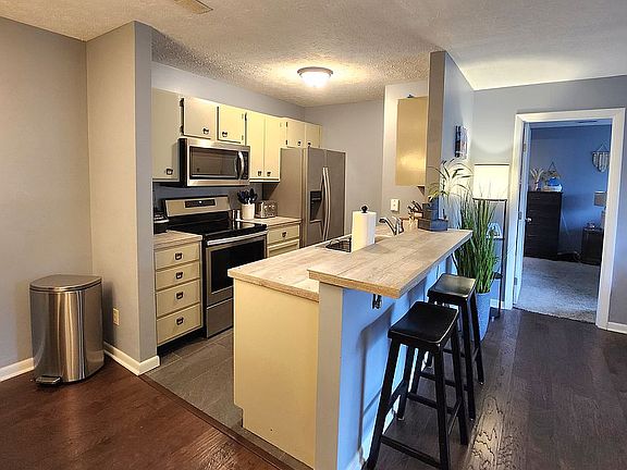 Happy to work with buyers agents. Condo is in Southgate. Second level 2 Bedroom and 2 Bath Condo featuring white cabinets, newer stainless steel appliances, wood/laminate flooring, walk in closet off primary bedroom, 2 closets in second bedroom. Overlooking woods, tennis courts and pool. Club house with exercise area. Washer and dryer included.