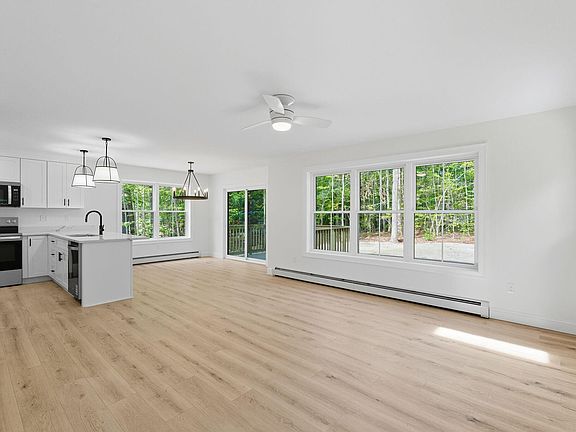 Perfectly situated on a private lot just minutes from Pettingill Pond and a public boat ramp, this brand new 2025 construction is surrounded by the sights and sounds of nature; an ideal setting for the outdoor enthusiast. Inside, the home showcases a generous open-concept floor plan featuring an eat-in kitchen, dining area, and living room that flow seamlessly to a private deck overlooking the backyard. Thoughtful touches include a half bathroom, pantry and laundry room, plus a custom built bench with cubbies conveniently located by the entrance to the two-car garage. Upstairs, the primary suite impresses with a tray ceiling, walk-in closet, and a bath with dual sinks and a custom-tiled shower. The second level also offers two additional bedrooms and another full bathroom. Need more space? The full, unfinished basement provides endless possibilities for customization. Tucked away yet just a short drive to the center of town, this hidden gem combines privacy, convenience, and modern comfort. This is truly a must-see - Come make this house your home!