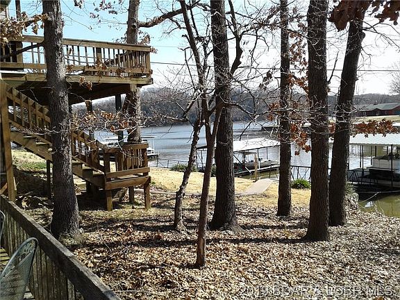 This is a great place to be at the lake! It's an established neighborhood with long-time owners in a quiet cove with plenty of picturesque views from the dock and the deck, beautiful tall trees. Blacktop almost all the way. Seller says there is great fishing in the area. Good water depth (approx.. 13' at full pool) at the dock so you can enjoy swimming and diving. 1-well dock has a lift and attached swim platform. Large windows in the living room facing the lake provide peaceful views. The large living room/dining room has a beautiful brick wood-burning fireplace to enjoy in the winter. Newer ceramic tile in the kitchen, bathroom and entry. The large deck on the lakeside is great for relaxing or entertaining. Shared well and septic. Plenty of parking behind the house, room for 4+ cars. Property being sold 'AS IS'.
