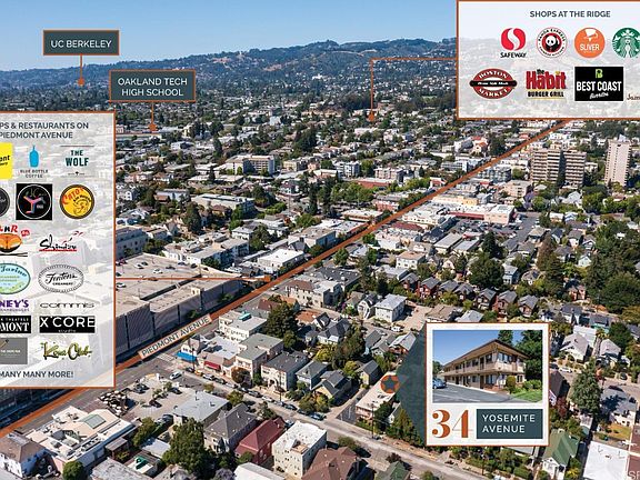 34 Yosemite Ave is an 8-unit, value-add, multifamily investment property located in the Piedmont Ave Neighborhood of Oakland, CA. Built in 1958, the 4,294 SF 2-story structure is situated on a 5,700 SF lot just off of Piedmont Ave, one of Oakland's most popular commercial corridors. The property features a unit mix of 8 1-bed, 1-bath units with similar floor plans. Several units at the property have undergone upgrades & provide an example of what can be done to units upon turnover. The next owner will have the opportunity to complete upgrades & take advantage of current market rate rents in the city of Oakland upon unit turnover. The property also features on-site coin-operated laundry & 7 off-street surface parking spaces that provide the potential opportunity for additional income. The property features a 98 Walk Score and have convenient access to a multitude of dining, shopping and entertainment options. The property is also under 1-mile to MacArthur BART Station.
