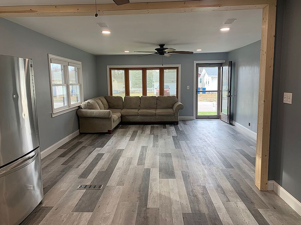 3 Bedroom Ranch completely remodeled on a Double Lot with OVER SIZED 2 car HEATED garage, plus a shed for additional workshop space or storage and a screened in porch. Fenced in back yard with newly added fire pit! Updates include new vinyl plank flooring throughout. Both bathrooms are newly renovated with new vanities. Egress window added downstairs to make into a large master bedroom with attached closet and 3/4 bath. Finished basement with laundry room and separate furnace/workshop room. Open concept kitchen/ living room. Home, garage, and shop all have brand new roofs this summer. Landscaping has been updated. Home is move in ready!! Beautiful hardwoods in the front and back yard provide plenty of shade in the summer and beautiful color in the fall. Don’t let this newly renovated home in the quiet city of Camanche pass you by! Call to schedule a showing. (563) 321-5331. ***PREAPPROVAL required before any offer will be considered. ***