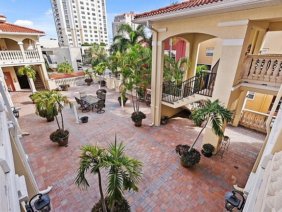 Downtown St Pete is now your playground! Discover the epitome of urban living in this charming 3-bedroom, 2.5-bathroom duplex condo nestled in the vibrant heart of St. Petersburg. Conveniently located just a block from Beach Drive, this home spans 1,786 square feet, offering a perfect blend of modernity and comfort with a personable touch. As you enter, you'll be greeted by stunning hardwood floors that lead into a chic granite kitchen, complete with stainless steel appliances—perfect for the savvy chef. The thoughtful layout includes dual primary suites on both the main and upper levels, both with their own private balcony, ensuring a personal retreat for everyone. The upper level primary is oversized with en suite bath and TWO walk in closets! Stay comfortable year-round with central heating and air conditioning. The convenience of a full-size washer and dryer in the unit makes laundry day a breeze. The building also features an elevator and attached garage for added convenience. Imagine unwinding in your private balcony, or on the large shared raised courtyard with downtown city views, perfect for a morning coffee or evening relaxation with your pet. With the elegance of hardwood floors throughout main living areas, tile in kitchen in baths, and soft carpet in the bedrooms, every corner of this home exudes style. Situated just a block from Beach Drive, you're steps away from the best that St. Pete has to offer—boutiques, eateries, the iconic Vinoy Hotel, and lively events at St. Pete Pier. Embrace the vibrant downtown lifestyle where every day offers new adventures just outside your door.