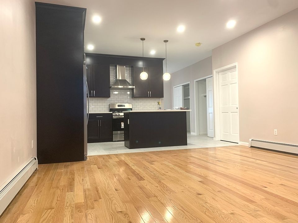 new to market! spacious and true 3 bedroom 1 bath move in ready!! apartment features; new stainless steel kitchen * high ceilings * parking * washer & dryer * hardwood floors * recessed high hat lighting * sunny filled * open kitchen to living room w/ plenty of closet space * queen sized bedrooms * fully tiled bathroom with storage parking ** video tour available ** catss ok, sorry no dogs flexible showing times, steps to the r train and mins to downtown / manhattan