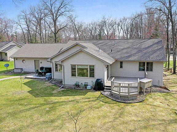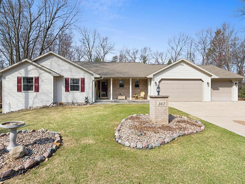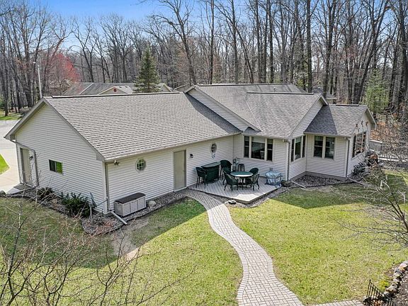 Impressive, custom-built one-story home nestled at the end of a cul-de-sac with a semi-wooded .59 acre lot. Foyer entrance greets you with cathedral ceilings & an open floor plan. Beautifully decorated living room has splendid wood floors and a wonderful fireplace. The well appointed kitchen features bisque cabinets, center island, stainless steel appliances and a large eat-in area overlooking the back yard. The sun-room/family room offers cathedral ceilings & another fireplace. 3 bedrooms on the main floor include a primary en-suite. It's full bath features both a jetted tub and a walk-in shower. Main floor laundry is near the garage entrance to the home creating a mud-room area. The lower level is nearly finished, offers another bath, plenty of room to expand, plus garage access.