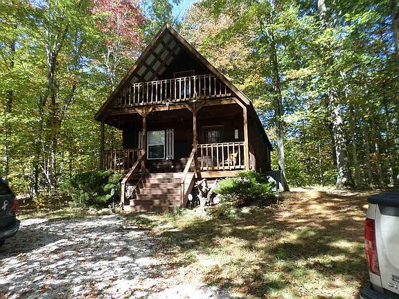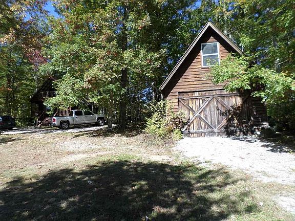 Rustic cabin in a great location with a spectacular view. all wood interior with open floor plan on the main floor containing a large living room with rock fire place and propane logs; dining area; kitchen, one half bath with washer and dryer hook up. and hew furnace area and new central heat and air. up stairs has two bed rooms, a landing area with a half bed if needed. balcany with the view you dream of. back open deck is hugh with and out side shower for those warm months. fire pit area rocked. unattached garage for the toys you need to store. city water with a great setup.