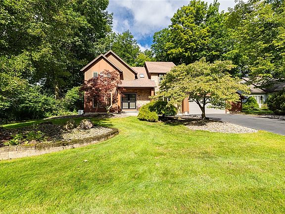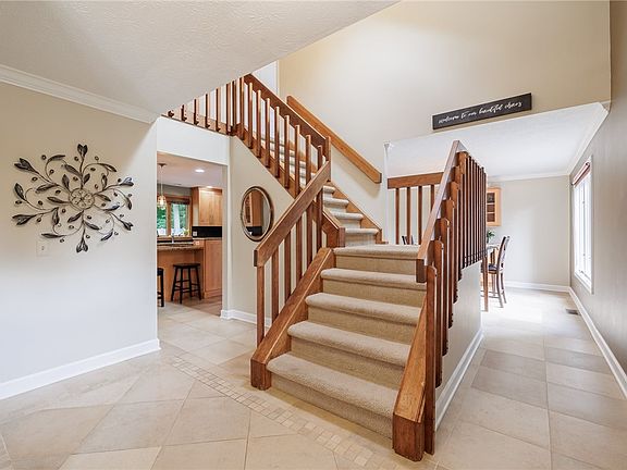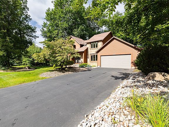This large contemporary home is located in a stunning neighborhood. The double front doors lead you inside to a two story foyer. A Gorgeous Custom Kitchen with Granite counter tops, Stainless steel appliances, Breakfast bar and dry bar including a wine fridge. There is a Formal dinning room with a matching buffet and a Great Room that features Vaulted Ceilings and a Custom built mantle. The first floor also includes a bonus space/office and first floor laundry. The second story has three large bedrooms and two gorgeous full bathrooms, one of which is a master suite. Finished basement adds to the livable square footage, including a possible 4th bedroom and living area! Outside there is a 2 car garage w/storage, Stamped Concrete Walkway and a brick entry. Step into the large fenced in yard that seamlessly merges with its wooded surroundings, creating a private oasis! Do not wait to make this house your home! Open House Sunday 8/18 from 5-7 pm and Delayed Negotiations are due by Monday 8/19 at 11am