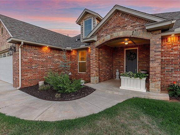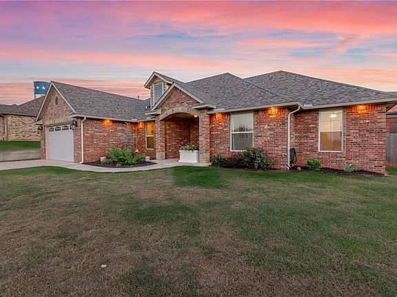 Looking for a home in the Blanchard school district with a well-manicured yard? This may just be the one that you want to hang your keys in after your workday has ended. Step inside to a large entry way and high ceilings. This semi-open floor plan offers you a large living room with beautiful painted brick fireplace. That gorgeous brick accent continues into the large kitchen as a backsplash accent. The kitchen also features a large island equipped with microwave, dishwasher and electric. There is plenty of countertop space adorned with granite. There is also a walk-in pantry with lots of room for storing your bigger kitchen pieces. The main bedroom suite has a trayed ceiling and a large connecting bathroom with separate sinks, a jetted tub and a gorgeous, tiled shower with bench seat. The patio is great for entertaining and has a pergola with built in seating and a sunshade. There is a wonderful workshop area behind the home for storing those extra lawn toys or gardening tools.