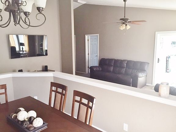 This cute 3 bedroom 2 bathroom home sits in a desirable neighborhood near schools, shopping and parks! This single level home features ceiling fans in each room, black stainless steel appliances, and central air. The master bedroom features a large walk in closet, and a bathroom with double vanity sinks and a beautiful tiled shower/tub combo. The guest/kids bedrooms are spacious with great closet space. The back yard is fenced for animals and there is a massive concrete pad for RV parking! There is an attached 2 car garage and additional parking on each side of the driveway. Put this one on your list to see today!