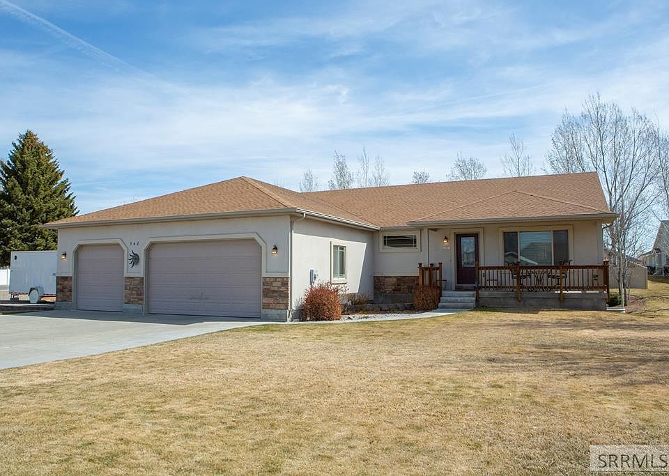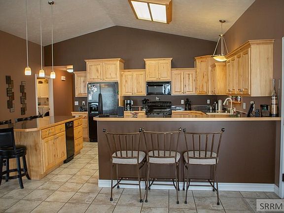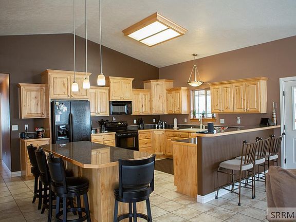 This stunning home is perfect for entertaining inside & out! Enter via the covered front porch into the tiled entry. Open floor plan w/vaulted ceilings gives your guests plenty of options in the HUGE kitchen, living room & dining room. The spacious knotty maple kitchen has an oversized bar, tons of cabinets & counterspace. Off the kitchen is a small private office, laundry w/pantry storage and the hallway to two bedrooms. The master bedroom is huge w/vaulted ceilings, a huge walk-in closet and ensuite bathroom, which has a double vanity, shower stall and a jetted tub on the bedroom side. There is a nice guest bedroom & a full bath on the main, as well. The basement was designed with fun in mind, with the pool table (which stays), card table & TV room! There is a 3/4 bath and 2 more bedrooms* and an exercize room. *1 bdrm is huge w/walk-in closet & the 2nd bdrm is used for an additional TV room with surround sound. Outdoor space is plentiful with a HUGE covered deck off the main level overlooking a gorgeous yard and a covered patio out the Walk-Out basement. Landscaping, trees, tiered & raised flower beds are perfect with lots of perrenials. PLUS there is RV parking on the north-side of the home! If buyers are interested in any of the furniture, let's make a deal!!