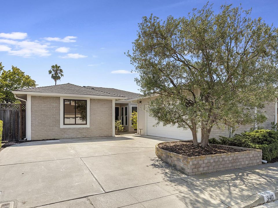 This is the one you've been waiting for! Nestled on a quiet cul-de-sac this single story rancher is waiting to become your dream home! Recently updated this property has fresh paint, chic light fixtures, granite & quartz countertops, recessed lighting, oak style vinyl plank flooring, dual paned windows and designer features at every turn. The entryway with it's original trendy Mid Century Modern black slate tile opens to a sundrenched living room & dining room. The kitchen has an eat in breakfast nook with plenty of extra storage. Adjacent is a separate laundry room with a washer and dryer which leads to a 2 car garage. The family room has a wood burning fireplace and large glass sliding doors which lead to a private, sunny garden perfect for parties with friends & family. The private primary bedroom has an ensuite bathroom with dual sinks, quartz counter tops, and separate stall shower. Close to the Bay Trail, Bridgepoint Parkway shopping, top schools, and easy access to HWY 101 & 92.