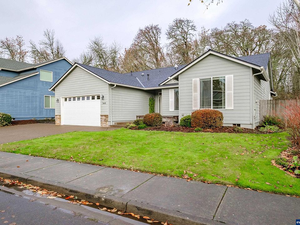 This is a beautiful single level property that backs up to peaceful greenspace & is move-in ready! You'll love the floorplan, 9 foot ceilings, the extra wide hallways & doorways (ADA compliant), oversized kitchen, dining area, living room and bedrooms. Cozy gas fireplace in living room. New roof and skylights installed about a year ago. Laundry room with cabinets and sink. Raised planter boxes, covered back patio, underground sprinklers front & back, garden shed/Greenhouse w/ water & power! Room for RV.