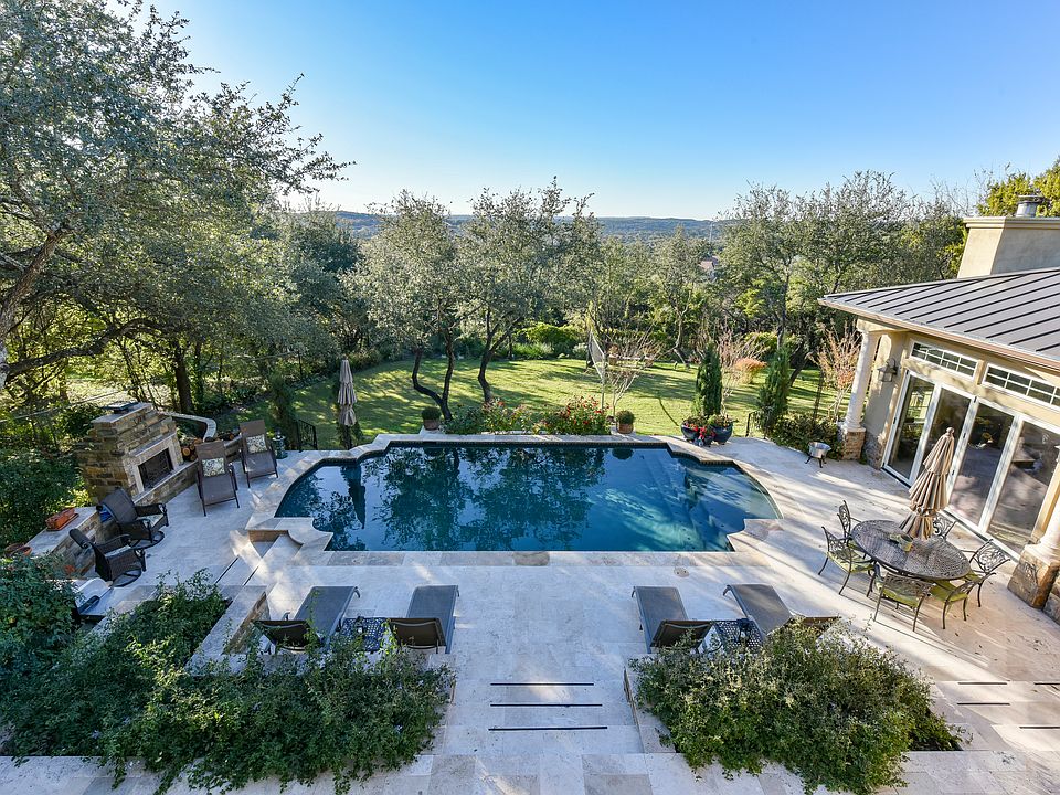 STUNNING VIEWS!! Indoor/Outdoor Living at it's finest! This 5 bedroom/ 4.5 bath 4,232 sq. ft home sits on 2- 1/2 acre lots (call agent) in the quiet and eclectic Camelot Estates overlooking Barton Creek Country Club minutes from downtown. Low tax rate. Eanes ISD. Home is like new with teak wood and travertine floors, gourmet kitchen, Thermador appliances, walk in pantry, granite counters, glass tile back splash, separate guest house (1bed/1bath 1000 sq ft), outdoor fireplace, grass volleyball court, and much more!