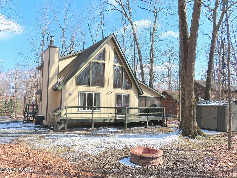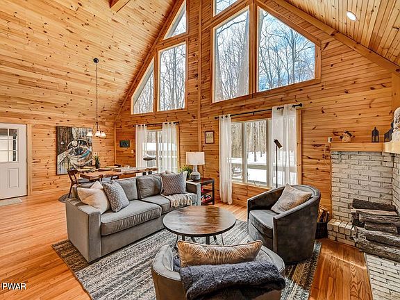 EXCLUSIVE SUN-SATIONAL Completely Remodeled 2020 Chalet COMES FULLY FURNISHED and TURN KEY! Owners spared no expense featuring New: Roof, water heater, updated plumbing, crawl space heater, dehumidifier , Great room fireplace insert is high efficiency, Oak Hardwood main Flooring, wood Soaring Cathedral Ceilings to enhance the natural light windows, Quartz Kitchen with new SS appliances Fit-for-a-Chef; new bathrooms; drinking water filtration system, main floor bedroom closet organizer, Multiple heat A/C split units; 16x10 screened porch with gas fireplace and outdoor fire pit seating area includes furniture too. Double sun decks overlook wooded views. New storage shed for the toys. A relaxing walk to Golf, Fitness, tennis and clubhouse. NOTHING TO DO BUT ENJOY!, Beds Description: 2+BED 2nd, Beds Description: 1Bed1st, Baths: 1 Bath Level 1, Baths: 1 Bath Level 2, Eating Area: Dining Area, Eating Area: Modern KT