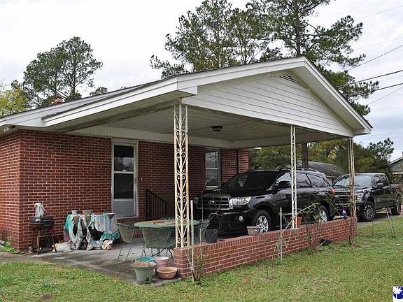 Four bedroom brick ranch on .4 acre lot in Mullins. New HVAC summer 2018. Newer flooring in den, bathroom, and kitchen. Newer washer, dryer, water heater, and refrigerator. Wired detached storage. Attached carport. Front porch. Property taxes are based on non-primary residence.