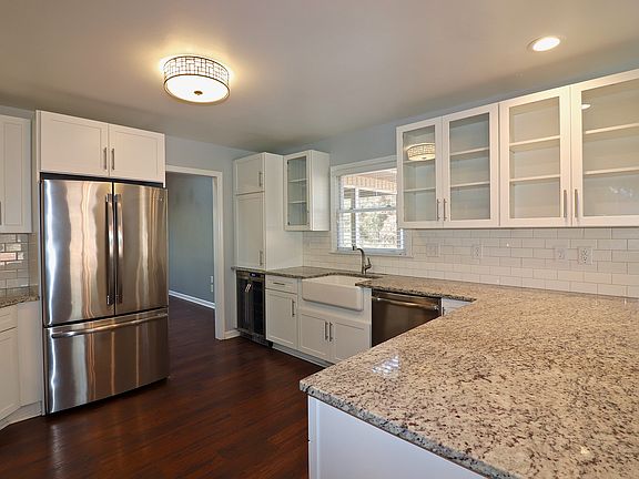 Beautifully renovated 4-5BR/3.5BA home in popular Sandhurst neighborhood in Southern Pines is a close commute to Ft. Bragg. Main level has master suite, screened porch, wood floors, cathedral great room with gas log FP & built-ins, updated kitchen with: wine fridge, farm sink, bar, stainless appliances & spacious dining area. Lower level has private entrance 1 or 2 more bedrooms & rec room. 5th bedroom can also serve as home office, gym or flex space + additional unfinished lower level storage. Single car garage + 2nd smaller garage bay for lawn equipment, bikes and toys. Low maintenance yard is fenced with a deck and access to lower level family room and storage. Lower level has supplemental gas wall heater. Note: 2nd floor HVAC approx. 7-8 yrs old, main level replaced 2013