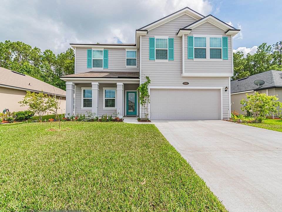 Gorgeous 4/4 Home With Huge Fenced Backyard! Professionally installed Pavers with Fire Pit, an Extended Lot beyond Fence line with amazing views of the Woods! No CDD Fees! This home features a Formal Dining/Office Space to Huge Open Gathering Room, Kitchen has Stainless Appliances, French door Refrigerator, Double ovens, 42'' White Cabinets, Soft Close Drawers, Granite Counters and Walk in Pantry. Kitchen Eating Space is a great Size and overlooks a Screened Patio. Guest Bedroom and Full Bath Down, Upstairs has a Huge Loft for an additional Gathering Room/Bonus. Master is Spacious, Master Bath with Separate Shower and Garden Tub. 3rd Guest Bedroom has 3rd Bath En-suite, 4th Guest Bedroom near 4th Bath. Laundry Room up. Lots of Crown molding, Upgraded Landscaping, Washer/Dryer negotiable.