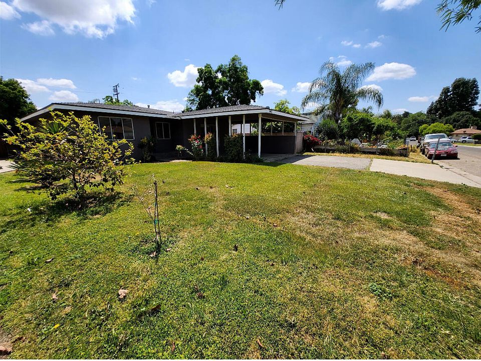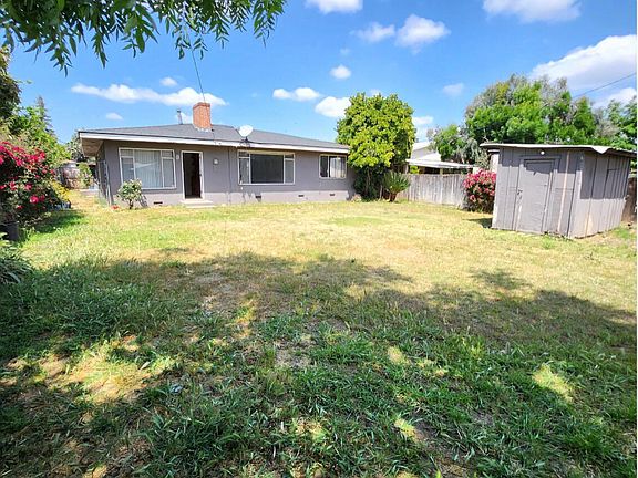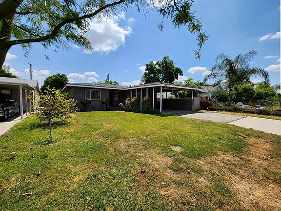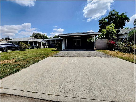 The outside of this home features a large front yard with mature roses and a cover car port. The back yard is very spacious and has an, estimated, 4' by 6' shed.