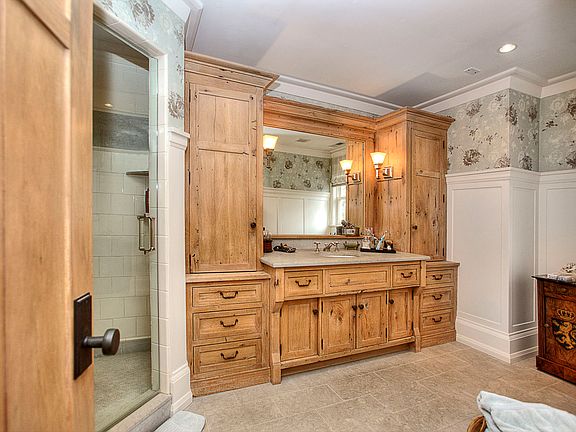Distinctive, perfectly sited New England Shingle Style is embraced by 3.8 ac of rolling lawns. Built by the acclaimed firm of M. Greenberg Associates., this 6 BR, 8.5 BA striking home is a sophisticated fusion of natural materials, extraordinary craftsmanship and exceptional design. Dramatic entry with intimate LR opens to library, chefs kitchen and great rm w/ vaulted ceiling overlooking lush grounds, pool/pool house. Romantic, light-filled master suite, his/her baths, dressing rooms + sitting room and balcony. 6 additional BR suites. LL movie theater, wine bar/cellar, game rm, gym/bath and great storage. 1820 restored barn/guest house offers grand entertainment space, native stone Fireplace, 2 en suite BRs, additional 2-car gar. Room for TC. Whole house generator.