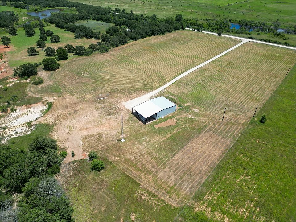 This two bedroom one bath barndominium is a versatile living space that combines the rustic charm of a barn and modern interior decor . Features an open living and a fully equipment kitchen with a large amount of counter space, large bathroom-utility room with tiled glass shower, and upstairs you will find the two nice size bedrooms. Walk out your door and straight into the large 1640 square foot insulated shop area that can be used to work on equipment or entertain the family and guest. Also included is a shed area for the livestock with a concrete wash bay. Perfect for 4-H or FFA projects. Attached is a 1500 square foot carport. This barndo and 17+ acres is a must see!