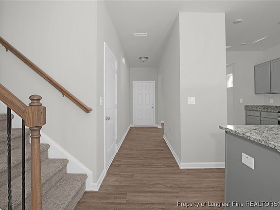 Smith Douglas Homes presents The Caldwell plan at Duncans Crossing. This stunning owner-suite downstairs home is crafted for both comfort and style. The upgraded cabinets and granite countertops pair beautifully with luxury vinyl plank flooring throughout the main areas, creating an atmosphere of elegance and relaxation .Additional windows, strategically placed for natural light, contribute to a bright and airy ambiance. Imagine unwinding on your screened covered rear porch, seamlessly connecting your living space to the outdoors. Upstairs, you'll find a spacious loft, along with two generously sized bedrooms and another full bathroom. Surrounded by trees, this home offers a unique sense of tranquility and natural privacy. MOVE IN READY! Photos are representational. Builder offering $12,000 CC or Rate buy down, preferred lender gives additional $2500 lender credit.