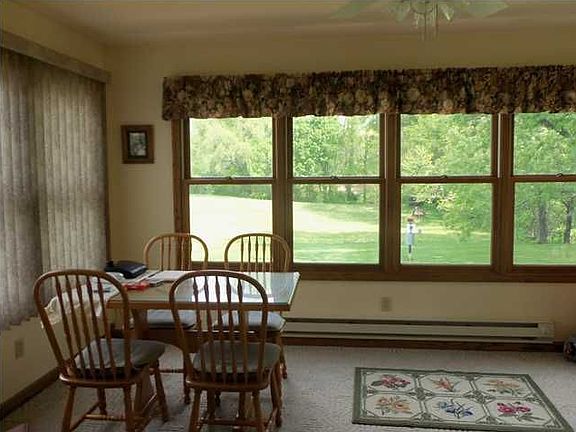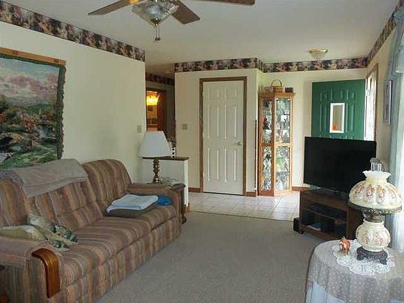 All oak trim, oak kitchen cabinets, tilt-in windows, walk-out bsmt, ceramic tile in kit/dn & foyer, walk-in closet, large bath, new shutters on the outside, seamless guttering, 2 new garage door openers. 2 garages, wood stove. All 36" doors, 4' hallway. Range and refrigerator on main floor to remain with property.