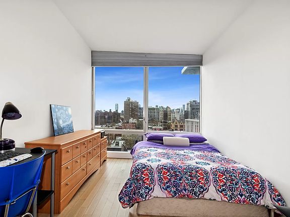 This spectacular south facing one-bedroom condo is not to be missed! With floor-to-ceiling windows providing cityscape views, this sun-flooded home features a master bedroom with an elegant en-suite bath finished with white compressed glass, deep soaking tub, separate glass-enclosed shower, Duravit toilet/sink and Starck Flos pendant lamps. The modern kitchen features stone counter-top, rich wood cabinetry with a Sub-Zero refrigerator, double freezer drawers, Miele oven/cook-top and a Fisher Paykel drawer dishwasher. Private balcony and in-unit washer/dryer round out this incredible home. Designed by world-renowned architect and designer, Philippe Starck, this full-service building features a 24-hour doorman, incredible amenities including a 2,600 sqft fitness center with sauna and steam room; a full floor lounge featuring a library, theater, billiard room & sundeck perfect for parties; landscaped roof deck with river and cityscape views with private cabanas for day and nighttime relaxing. The neighborhood is brimming with renowned restaurants and bars; shopping couldn't be easier, with a 24-hour CVS, a Starbucks and a range of grocery stores including Fairway, Trader Joe's and Gracefully Gourmet. The building is a short distance from eclectic festivals and art-in-the-park shows of Madison Square Park; and the East River Park, with miles of beautified running and biking paths stretching along the river.
