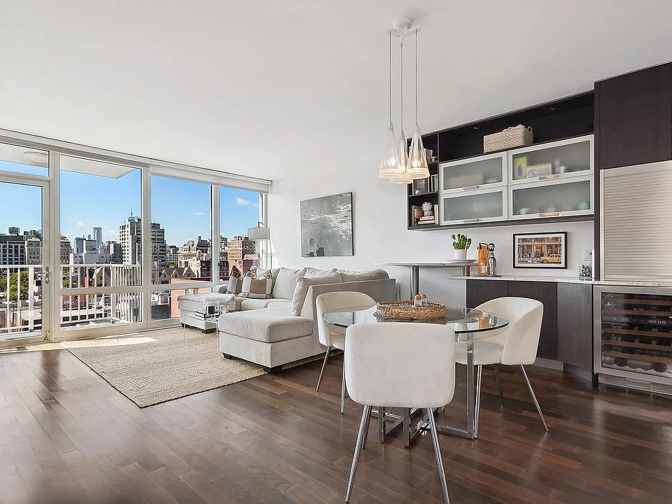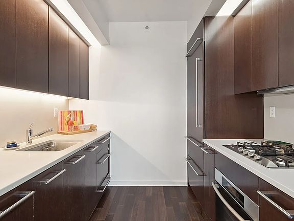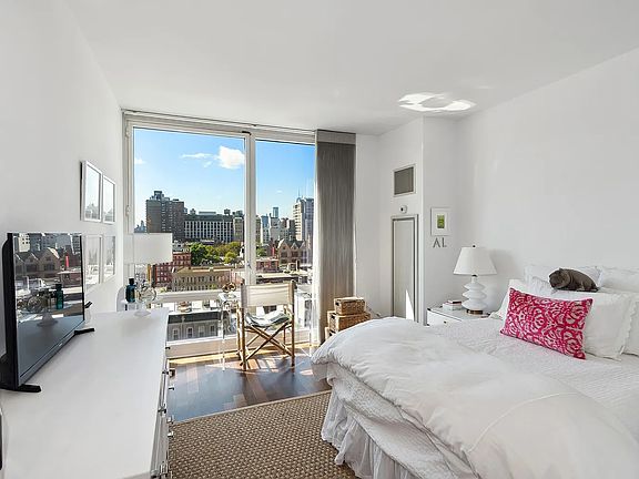Cityscape views that will take your breath away!! Sun-filled with oversized floor-to-ceiling windows and private balcony, this spectacular 3-bedroom 2.5-bath oasis is not to be missed! The modern kitchen is equipped with a Sub-Zero refrigerator, double freezer drawers, Miele oven/cook top and Fisher Paykel Dishwasher. The dining area/living room features a kitchen expansion (by Manhattan Kitchen + Bath) with a dual temperature wine fridge, hidden microwave and stools, ideal for your entertaining needs! The master bedroom en-suite bathroom features two Duravit sinks and vanity, a deep soaking tub and separate glass shower stall. In addition, all three bathrooms were completed with upgrades from the Philippe Starck's bathroom collection. In-unit washer/dryer, multiple walk-in closets, prime oak floors and multi-zone HVAC system round out this incredible home. Designed by world-renowned architect and designer, Philippe Starck, this full-service building features a 24-hour doorman, incredible amenities including a 2,600 sqft fitness center with sauna and steam room; a full floor lounge featuring a library, theater, billiard room & sundeck perfect for parties; landscaped roof deck with river and cityscape views with private cabanas for day and nighttime relaxing. The neighborhood is brimming with renowned restaurants and bars; shopping couldn't be easier, with a 24-hour CVS, a Starbucks and a range of grocery stores including Fairway, Trader Joe's and Gracefully Gourmet. The building is a short distance from eclectic festivals and art-in-the-park shows of Madison Square Park; and the East River Park, with miles of beautified running and biking paths stretching along the river.