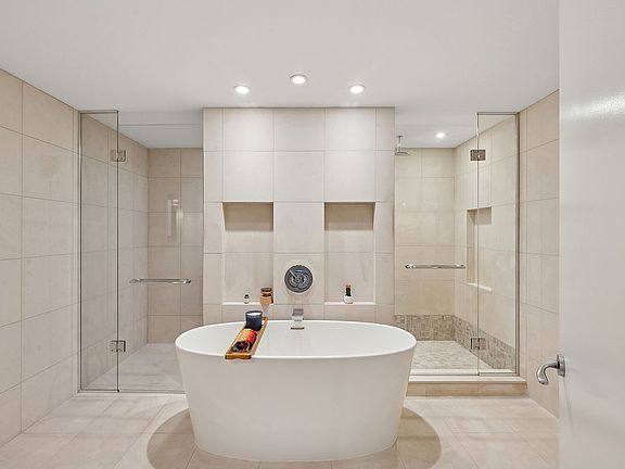 The primary suite is a serene retreat with dual exposures, a spacious walk-in closet, and a spa-inspired en-suite with a rain shower, freestanding tub, and double vanity. The second bedroom offers flexibility, complemented by a stylish full bathroom. Additional highlights include multi-zone climate control and an in-unit washer/dryer.