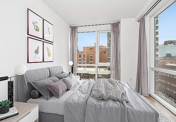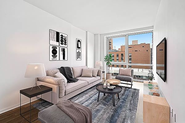 Quiet, peaceful corner unit one bedroom, so extra spacious, with lots of sunlight and sky 14 stories high. 23rd Street between 1st and 2nd avenues. Unfurnished apartment. Furnished for additional rent. 1 bedroom 1 extra large bathroom with tub and walk in shower 1 living room 1 combined kitchen and dining room. Central air conditioning and heat. New modern building built 2007. New washer and dryer in unit Fisher Paykel dishwasher Miele oven and cooktop Sub-Zero refrigerator 24 hour full time doorman Gym and health club Sauna and steam room 2nd floor outtdoor lounge courtyard with plants, sofas, and fireplace 21st floor rooftop with sofas, plants, and wraparound views Library lounge Theatre room Billiards area Bicycle storage in building Morton Williams supermarket across the street. CVS on ground floor. Restaurants and local shops everywhere. Please be aware, building asks tenant applicant for a credit check, background check, 700+ credit score, one month rent as security deposit.