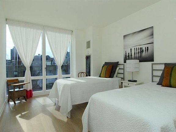 With over 1600sf of living space, this modern 3 bedroom, 2.5 bathroom home boasts an open living/dining room with galley cook's kitchen, designer baths with Duravit and Stark finishes throughout, sun-drenched southern exposure from every window, and its very own private balcony. Other features include washer/dryer, built-in A/C units throughout, top of the line appliances, gorgeous three-inch white oak floors throughout, and a grand master bath with tub, stall shower and 2 vanities. The building has extra storage available, lounge on the second floor with library and fireplace, screening room, game room, entertaining area with bar, 2,000sf landscaped outdoor deck with a marble fireplace, 3,000sf roof deck with cabanas, and a 2,600sf fitness center with steam room and sauna. The perfect alternative to a hotel. Available unfurnished for immediate occupancy upon condominium approval. Brokers CYOF.