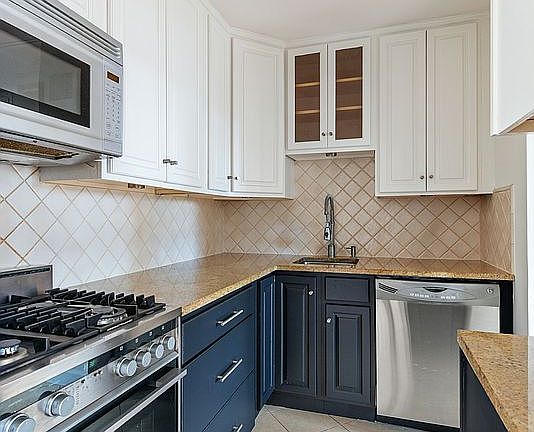 Crown molding, and northwestern exposures create a warm and welcoming atmosphere across the spacious living and dining area, perfect for both entertaining and everyday living. The kitchen is designed with function in mind, offering abundant cabinetry and a dishwasher for modern convenience.