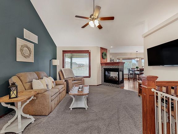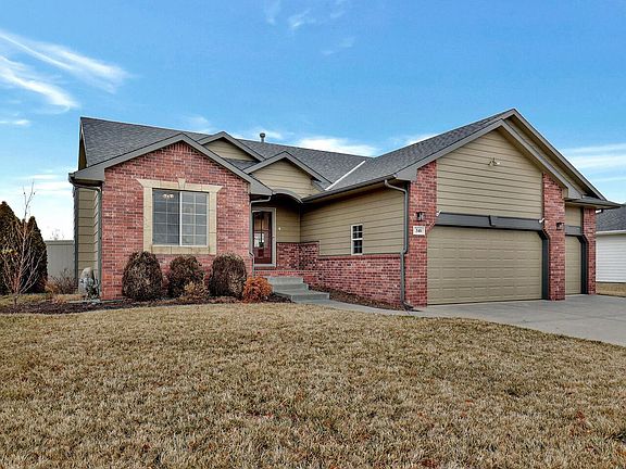 Stunning ranch on a lake lot in the quiet Northwoods development. This well-cared for 4 bedroom, 3 bathroom home is ready to welcome you! Completely move in ready with an open floor plan, split bedroom concept, fresh interior paint, new roof, new front door and new light fixtures. The primary bedroom includes a walk-in closet and a master bathroom with separate sinks, shower and corner jetted tub to enjoy after those long work days. The living room boasts vaulted ceilings and a gas fireplace with space connecting the dining room and kitchen. The beautiful kitchen has a walk-in pantry, granite countertops, wood floors, stainless steel appliances (that all remain), a large island with seating, additional dining area and a perfect niche for a coffee bar! Downstairs, the possibilities are endless with huge family/rec room, 1 additional bedroom, full bathroom, bonus room and storage. Custom upgrades and quality workmanship are obvious in this lovely home. Outside you will find a large covered patio that you can enjoy family BBQ's, vinyl privacy fence and sprinkler system. Additional features include: New tamper proof outlets, new motion lights in the pantry and garage, new toilets upstairs. Located just northeast of Wichita with a spacious private park area, gazebo picnic area and sidewalk for trikes and strollers. E-Z access to Highways 254 & 96. Hurry to see and don't miss it!