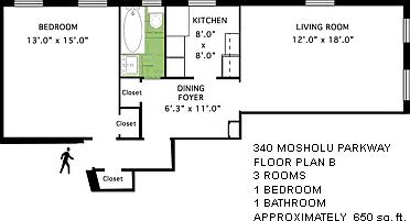 340 E MOSHOLU PARKWAY S. Apt. 5-B SPONSOR UNIT (No Board Approval) 1 BED/1 BA w/ all rooms radiating from a central Dining Foyer. Updated 650 s/f rear-facing unit w/ open views, light-filled & pin-drop quiet. Intimate 53 unit Art-Moderne elevator building attributed to Joseph Schafran & Thomas Dunn, Architects ca. 1937. Original extant pre-war details & high ceilings. Windowed Kitchen & Bath. Live among the cognoscenti on a picturesque, tree-lined boulevard in Bedford Park - The Bronx's next hip, trendy nabe. Affordable to buy ($36K cash down), economical to own: $708.04 Mo.Maint. (as of 11/01/21) incl H & H/W b/4 STAR; New York Botanical Garden, Bronx Park, Fordham University, Montefiore Hospital, shopping along Webster & Bedford Park Avenues, IND & IRT Subways (B/D/4 lines), MetroNorth Harlem Line all within a few short blocks. Proof of Funds=20% of Asking Price req'd in advance of showing. NOTE: Subletting allowed after 2 years residency. Seller pays Transfer tax. Buyer pays Seller Atty fee. No Pets/No Investors.
