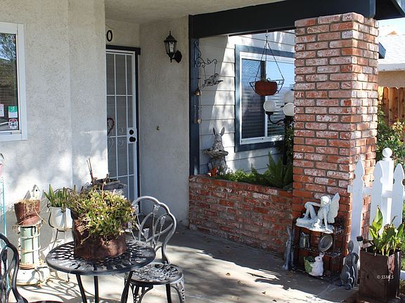 Pass through the white picket fence to the cozy covered sitting area. Entry has security screen, and 1 light frosted glass painted door. Feel right at home as you enter the open living room with updated wood flooring, beautiful red brick fireplace and blinds covering the front window. Dining area has lighted ceiling fan, French doors looking out to the back covered patio, and access to the 2 car garage with laundry area. Kitchen offers, oak finish cabinets, tile flooring, updated countertops with tile back splash, black and stainless steel appliances, recessed lighting and over kitchen sink window looking out to the front yard. Hallway with large storage closet and cabinets, invites you to the 3 bedrooms with updated wood flooring, lighted ceiling fans and window coverings. Hall bathroom has updated vanity, fixtures, tub-n-shower and tile flooring. Master bathroom is updated with tile shower, single sink vanity and tile flooring. The newly installed evaporated coolers are not on the roof. Backyard has plenty of space with dog runs and storage shed. This home is walking distance to Upjohn park and Gateway elementary school. Don't let this DARLING home get away