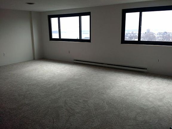 Spacious, light 2BR 2 bath condo on top floor of hi-rise, elevator building on Eastern Promenade, Portland, overlooking Tukey's Bridge. Gorgeous water views from every window. Fitness room in basement level, walking distance to east end beach, trails and restaurants. Strong condo association. Great community. Fitness Room. Outdoor pool (summer only) - heated. Across street from parks, beach, ball fields, walking trails. All units in this building are multi-level. There are 2 sets of stairs in each unit - from entrance to main LR and another to BR's. This is a quiet professional building with strict guidelines concerning noise and other "community living" eventualities. Applicant must have EXCELLENT credit and references, as well as stable income. Tenant pays utilities: electric heat/hot water. Hi-speed cable internet and Standard TV included in rent. Move in and out fees: $150 ea. Fitness Room in lower level 24 x 7. Trash & Recycling included. Water/Sewer included. No smokers. No pets.