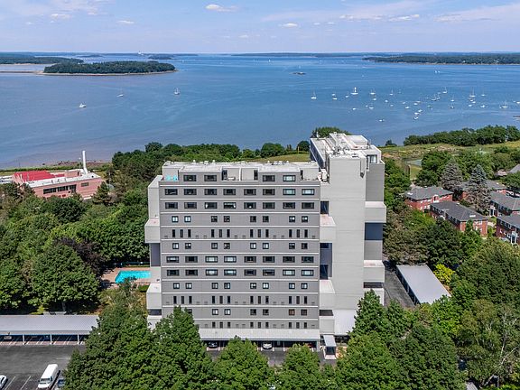Spectacular views! This 2 bedroom, 2 bath top floor condo features stunning western views of Portland skyline and Back Cove from the living area. The bedrooms have equally dramatic views of Casco Bay providing beautiful sunrises while the living area has sunsets and excellent natural light all day! This unit has excellent storage with attractive built-ins in the living area and a separate small office area with lots of cabinets and shelving located in the laundry/utility room off the foyer. There is a primary bedroom with large walk-in shower and the guest bedroom bath has a tub/shower offering both comfortable options. This unit has an assigned covered space across from the main entrance which is an advantageous and convenient location. The association has an outdoor in-ground pool for summer fun and a gym for all seasons. Definitely a great location for walking trails, East End Beach, tennis courts and all the great options on inner Washington and Congress! Sorry but no dogs are allowed.