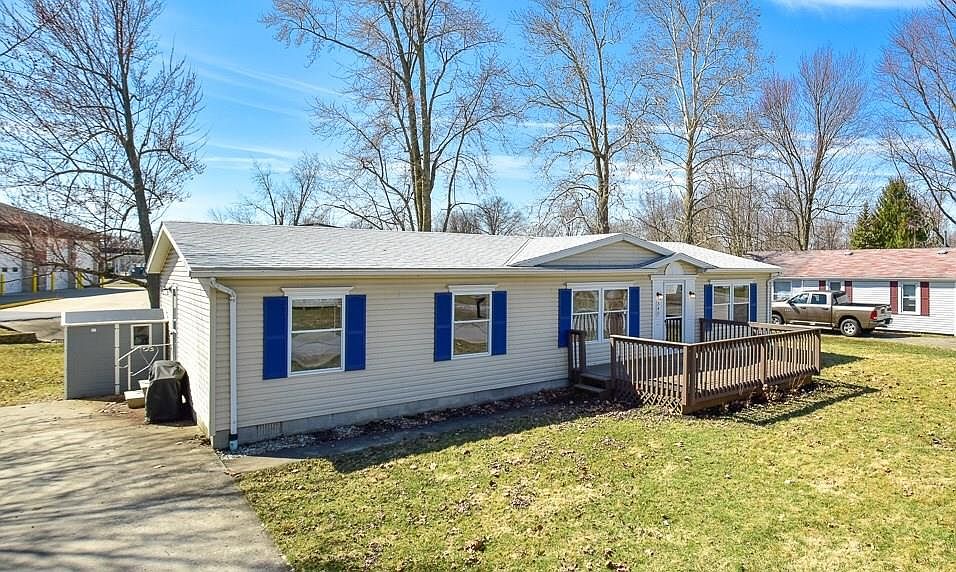This updated manufactured ranch home features a split bedroom design with full master suite. The 2 other spacious bedrooms share a full hallway bath. A large laundry area provides a mudroom space just inside the side door. The main living area is semi-open to the dining area and kitchen combination. All of the walls have been painted & floors replaced, except laundry room. New lighting and fixtures throughout. Both bathrooms have been updated to offer a more modern feel. Located close to SR 33, providing easy access to food, entertainment, shopping and Indian Lake.