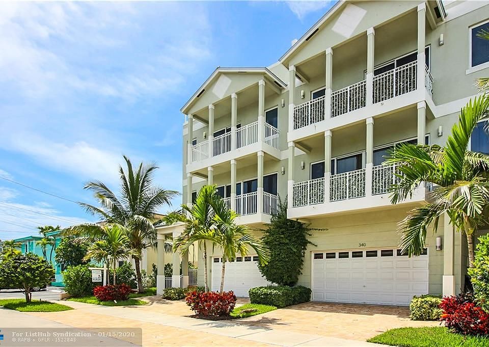 Fantastic ocean and intracoastal roof deck views! 340 Elm features an elevator, sprawling kitchen, full sized garage,roof deck, and tasteful upgrades. Laundry room and guest bed on the first floor give way to second floor with wideopen spaces, kitchen, dining, and office or living nook. Master bedroom with plentiful closet spacing occupies thethird floor along with remaining bedroom. The fourth floor is an over sized roof deck. Furniture can be negotiatedinto the sale for an additional fee. There are no minimum days to lease, and no waiting time period to lease afterpurchase.