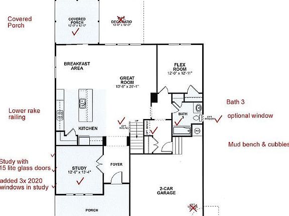 Wrightsville C- Large open floor plan.  Walk in to a private study with double glass doors, Large open gourmet kitchen with breakfast area overlooking the great room and a guest bedroom off the rear of the home.  Mud bench with cubbies when you enter from the garage.  On the second floor is a enormous owners bedrooms with large walk in closet.  The owners bath has a large tile walk in shower with bench seat. 2 oversized secondary bedrooms with Jack and Jill bath and lastly a large open loft.