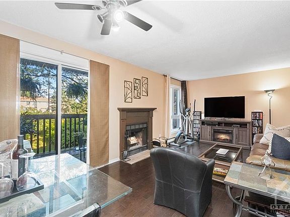 First-timers & investors, this 2 bedroom, 2 bathroom, 2 level condo has a west facing balcony to enjoy Ottawa's beautiful sunsets, a hedged park-like outdoor setting, a walking path to many more, and no rear-neighbours, for extra privacy! Located amongst all major amenities, with quick and easy access to the highway, parks, bike & walking paths, schools and services. This home has oak hardwood & ceramic tile floors with cozy-warm carpeted bedrooms. The kitchen has great cabinet & counter space with a pass through to the dining area. The wood burning fireplace will be retrofitted to electric. Please note : Reno's underway on the fireplaces, balconies and siding throughout the complex. Condo fee includes; Building Insurance, Caretaker, Garbage Removal, General Maintenance and Repair, Insurance, Snow Removal, Water/Sewer
