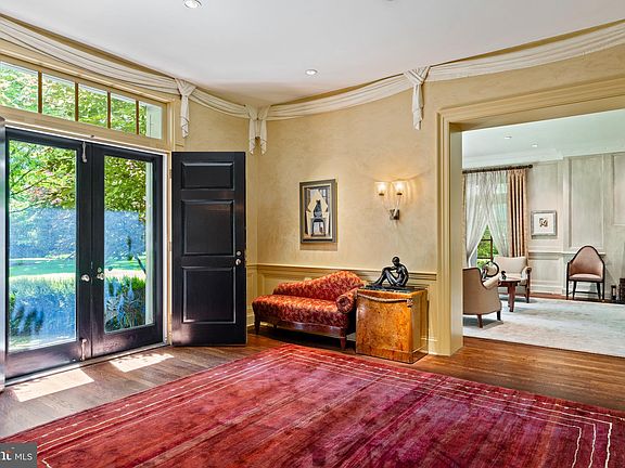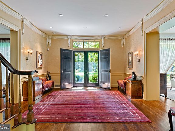 Discover Main Line magnificence in this secluded six-bedroom, seven-and-a-half-bathroom center-hall colonial featuring meticulously curated interiors, acres of arboretum-quality grounds and a coveted Bryn Mawr location. Available for the first time in 20 years, this exceptionally maintained residence awaits its next era of lavish entertaining and serene relaxation. Originally designed and built by respected Main Line architect Walter K. Durham in 1935, this extraordinary home combines classic influence and prewar modernism to masterful effect. It's no surprise it has been professionally photographed and published in the pages of The Magazine Antiques. A gorgeous brick façade with stone trim and a classic pediment underscores the home's classic inspiration. Inside the 7,180-square-foot showplace, ceilings soar over 10 feet tall above exquisite hardwood floors, handsome millwork, premium finishes and bespoke architectural details. The gracious foyer and grand staircase make a dramatic introduction to the classic center-hall layout with swag moldings and sophisticated wainscoting. To the left, greet guests in the regal formal living room featuring a stately stone fireplace, ornate crown molding and custom wall treatments. Here, French doors open to an inviting den with oversized windows, while a curved staircase leads to the main-floor owner's suite's sitting room and private quarters. The tranquil primary bedroom creates an ambiance of absolute serenity with luxurious wall-to-wall carpeting, custom wall coverings and a stately fireplace. Custom carved doors reveal multiple closets and the vast dressing room, while the en suite full bathroom is a contemporary indoor-outdoor oasis where a freestanding soaking tub, two walk-in showers and separate vanities are surrounded by walls of windows. To the right of the foyer, plan memorable gatherings in the large formal dining room warmed by a distinctive fireplace and topped by a soaring tray ceiling. Gracious entertaining is effortless, thanks to a powder room and direct access to the modern gourmet kitchen. Chefs will love the sleek wood cabinetry, large center island, stainless steel countertops and a fleet of professional-grade appliances, including a six-burner cooktop, Viking vent hood, double Wolf wall ovens, oversized cabinet-front refrigerator-freezers, and dishwasher drawers. Enjoy morning coffee and casual meals in the breakfast nook, where French doors lead to a stone patio. A large skylit mudroom does double duty as a pantry with walls of floor-to-ceiling cabinetry and shelving. A comfortable family room filled with French doors and a full bathroom completes the thoughtful main floor. Throughout the main level's indoor-outdoor layout, numerous French doors open to the park-like 2.37-acre grounds — a horticulturalist's wonderland of lush rolling lawns, specimen plantings, towering trees and manicured gardens. Retreat to the heated swimming pool, or plan al fresco dinners and garden parties on the large stone terraces. Board your private elevator or ascend the elegant staircase to explore the home's second level, where the vast library invites you to curl up with a good book alongside carved built-ins and a fireplace. Four secondary suites with private baths provide plenty of room for friends, family and staff on this floor. Head to the lower level to find a carpeted home gym, an oversized laundry room and a wine room. The special property sits very privately down a long lane leading to a stone motor court flanked by an attached two-car garage and a detached one-car garage. While it feels worlds away, this peaceful home is ideally situated near Main Line amenities, including wonderful shopping, fine dining, golf courses, train stations, and top-rated schools and colleges. Enjoy easy access to Center City Philadelphia attractions and the Philadelphia Airport.