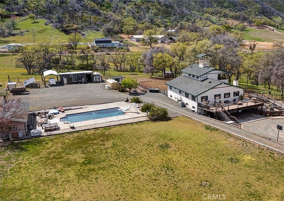 Multi resident compound ideal for the active family located in the peaceful landscape of Lakeport, CA, this exceptional PRIVATE 37.8-acre usable semi-flat estate offers an unparalleled opportunity including potential vineyard for refined country living. —ideal for active families, hobby ranchers, or investors. The semi-flat, fully usable land offers endless opportunities, including vineyard potential, and features a 4,640 sq ft main home with 5 bedrooms, 3 remodeled tile bathrooms, an oversized family room with stunning views, central heat and A/C, and a private primary suite with a jacuzzi tub and balcony. Below the main home is a separate 2-bedroom, 1-bath apartment, while a detached 980 sq ft 2-bedroom, 1-bath guest house with garage provides additional living space—both currently rented for immediate income. Designed for an outdoor lifestyle, the property boasts a 20’x36’ saltwater pool, firearms range, ATV track, seasonal pond, koi pond, and a winter creek. It’s fully fenced and cross-fenced for horses or cattle, complete with a large animal corral and 3,000 sq ft Quonset hut. Additional amenities include a main shop with 220 power, paint shed, sports equipment shed, greenhouse, chicken coop, and bird aviary. Sustainability is key, with owned solar panels and Tesla batteries already in place. Ranch equipment and seller financing available with negotiable terms—this is a MUST-SEE compound offering unparalleled privacy, functionality, and lifestyle potential.