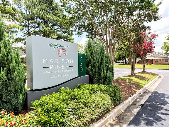 Welcome Home to Madison Pines Live out your dreams at Madison Pines, offering spacious three bedroom apartments for rent in North Madison, Alabama. Located within the highly coveted Madison City School System, there is so much to love about our community and neighborhood. In each of our pet-friendly three bedroom homes, you'll find smooth hardwood-style flooring, a fully equipped kitchen, and your own private patio. When you live at Madison Pines, you'll have access to the fitness center, laundry facility, and a playground. Convenient, comfortable, with all the features you crave find it all here at Madison Pines.