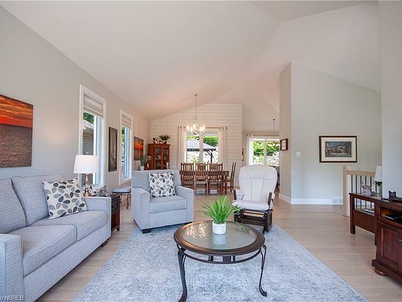 Welcome to this immaculately kept, turnkey 3 bedroom, 3 bathroom raised bungalow with a large built-in double car garage with workshop and private backyard! This bright and modern home is sure to please and features a spacious open concept main floor living area with tall vaulted ceilings, custom kitchen with appliance package & granite counters overlooking the backyard with direct access to the two tiered patio with covered seating area. Large primary bathroom with 4pc ensuite and walk-in closet, two further main floor bedrooms, further 4pc bath and main floor laundry. The lower level offers a large and bright rec-room with recently completed stone accent electric fireplace, den/storage room, 3pc bathroom with large walk-in tiled shower with heated floors. Forced air gas heat with central air throughout. The built in double car garage is extra deep and features an enclosed workshop. The exterior is low maintenance and offers plenty of parking, a beautiful landscaped partially fenced backyard with many small trees, large storage shed and backing on to city owned forest area. Short drive to all area amenities, including 18 hole golf course, local restaurants, stores and so much more! Come have a look for yourself today!